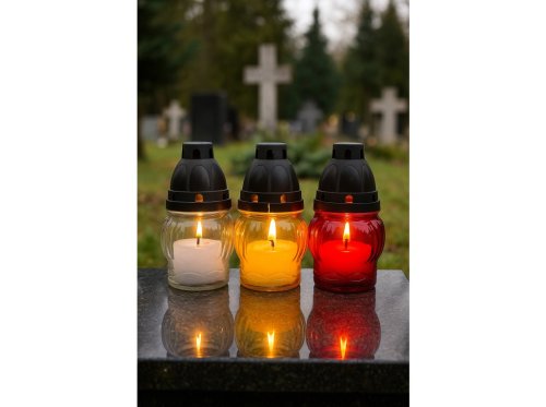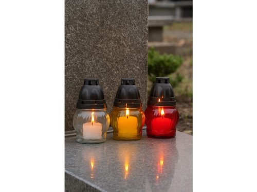 Sklo poskytuje až 9 hodín horenia. Vhodné na skrášlenie cintorínov, pomníkov a ostatných miest posledného odpočinku. Jeho rozmery sú 14 cm.