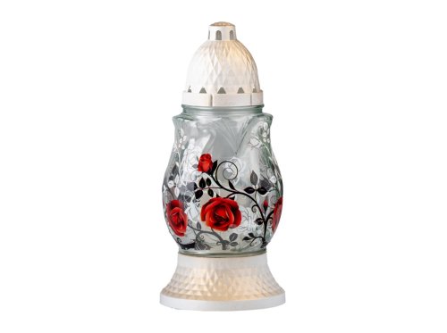 Sklo poskytuje až 20 hodín horenia. Ideálna pre jemnú výzdobu cintorína. Jeho rozmery sú 24 cm.