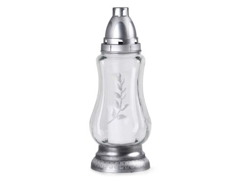 Sklo s prírodným motívom vetvičky a pruhov, ideálne na oživenie hrobov. Poskytuje až 36 hodín horenia. Jeho rozmery sú 29,5 cm.