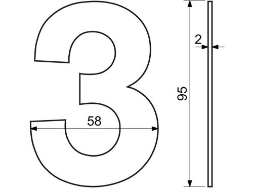 Číslo domové č. 3, 95 mm, nerez ČER.