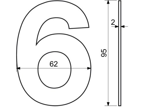 Číslo domové č. 6, 95 mm, nerez ČER.