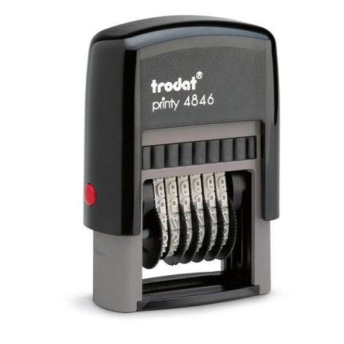 Samofarbiaca číslovacia pečiatka 6 čísel Výška čísel 4,0 mm Dodávame s čiernym vankúšikom Náhradné vankúšiky: čierny 231.456, modrý 114.789, červený 213.554, zelený 223.654