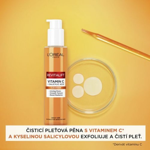 Čistiaca pleťová pena s vitamínom C a kyselinou salicylovou exfoliuje a čistí pleť. Vitamín C pomáha rozjasniť tón pleti a rozžiariť pleť. Kyselina salicylová zmenšuje póry a vyhladzuje štruktúru pleti.