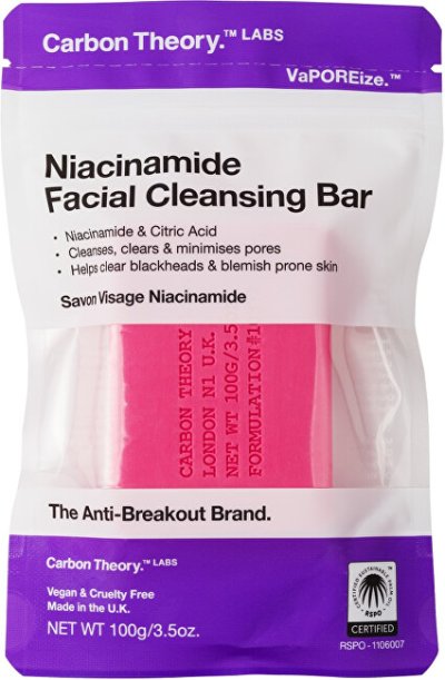 Toto mydlo na čistenie tváre obsahuje niacínamid a kyselinu citrónovú, ktoré minimalizujú póry a bojujú proti čiernym bodkám.