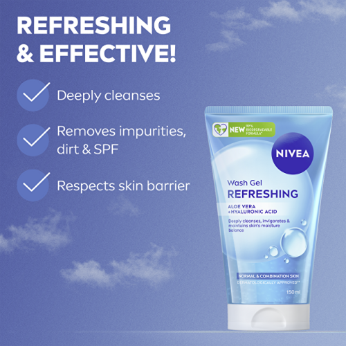 Osviežujúci čistiaci gél je ideálny prvý krok každodennej starostlivosti o pleť. Hĺbkovo čistí póry, dôkladne odstraňuje make-up, nečistoty a prebytočný maz a pritom nenarúša prirodzenú kožnú bariéru. Vďaka šetrnému zloženiu s výťažkami z lotosu a aktívnou látkou hydramine®, ktorá je pleti prirodzená, poskytuje gél pleti hydratáciu už počas čistenia a chráni ju pred vysušením aj pnutím.