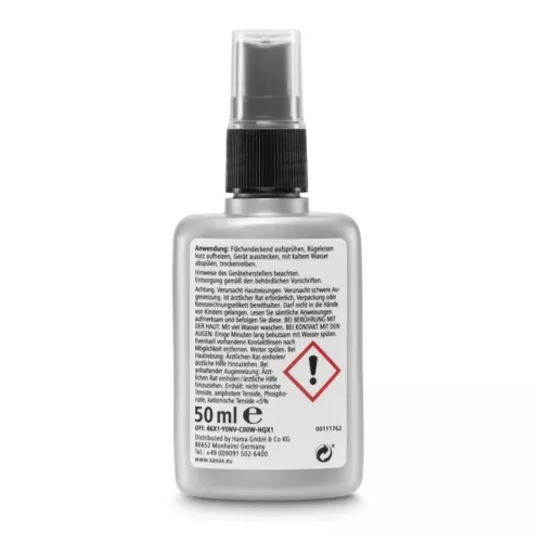 Čistič XAVAX pôsobí rýchlo a vďaka vysoko účinným prísadám predlžuje životnosť žehličky. Stačí nastriekať na žehliacu plochu, krátko rozohriať, odpojiť od siete, opláchnuť studenou vodou a utrieť dosucha utierkou z mikrovlákna, ktorá je súčasťou balenia.
