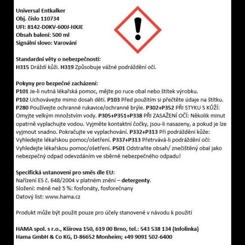 Čistiaci prostriedok Xavax s objemom 500 ml ľahko a rýchlo odstraňuje vápenné usadeniny z rôznych typov domácich spotrebičov. Môžete čistiť varné kanvice, hrnce, sprchové hlavice, vodovodné kohútiky, žehliace plochy, ponorné variče, prekvapkávače a samovary atď. Aditívne látky zaisťujú účinné odstránenie vodného kameňa a chránia pred koróziou kovových častí . Prostriedok tiež odstráni vodný kameň z ušľachtilej ocele, obkladov a keramiky.