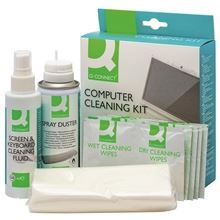 Súprava na čistenie obrazoviek a klávesníc PC značky Q-Connect Obsahuje: 150 ml sprej, suché/mokré obrúsky, fľašu 125 ml čistiaceho roztoku na obrazovky a suché absorpčné vreckovky