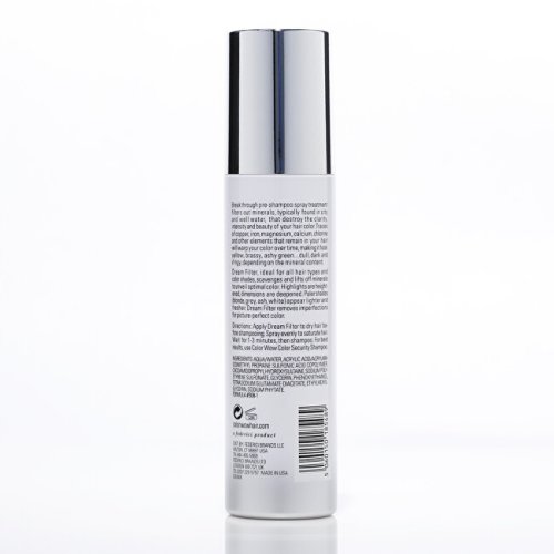 Dream Filter Spray odstraňuje z vlasov usadené minerály a kovy obsiahnuté vo vode, ktoré môžu skresliť farbu vlasov. Usadené látky na vlasoch spôsobujú krehkosť a lámavosť vlasov. Len za niekoľko minút Dream Filter zaisťuje žiarivú a sviežu farbu vlasov. Extrémne jemný sprej vlasy nevysušuje a nepoškodzuje štruktúru vlasov.