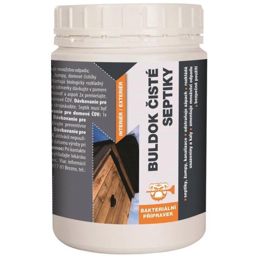 čistič septikov BULDOK je sypký, bakteriálne-enzymatický prípravok pre čisté septiky, žumpy, domové ČOV, sifóny, odpady a suché záchody bez zápachu odstraňuje nepríjemný zápach eliminuje tvorbu kalov …