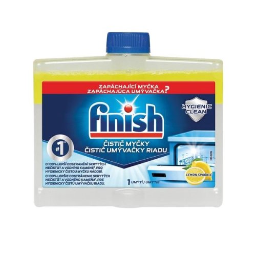 • Čistič umývačky Finish s vôňou citrónu zbavuje umývačku usadenín a vodného kameňa