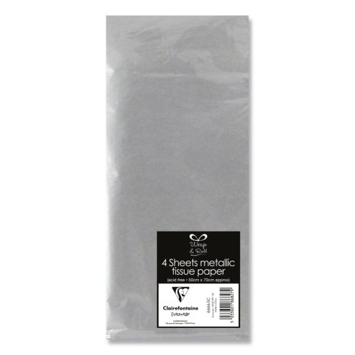 CLAIREFONTAINE Hodvábny papier strieborný, balenie obsahuje: 4 ks, rozmer: 50x70 cm, vyrobené vo Francúzsku. Štýlov ý baliaci papier Clairefontaine s originálnym francúzskym dizajnom. Perfektný pre každú príležitosť.
