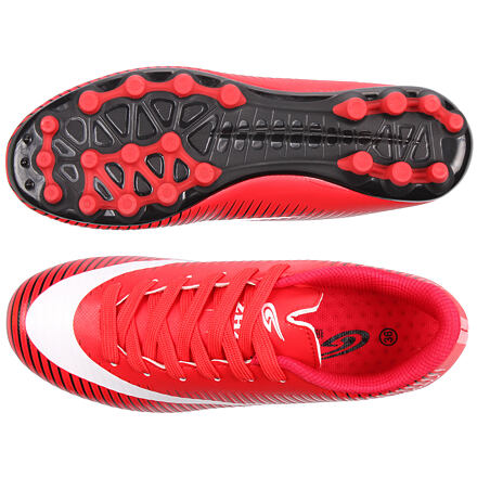 Kopačky Cleats Man sú jednou z najrýchlejších a najľahších futbalových topánok na trhu. Cleats Man šikovne kombinujú tie najmodernejšie materiály a technológie, a tak umožňujú nízku hmotnosť so skvelými hernými vlastnosťami. Hmotnosť jednej topánky o veľkosti EUR 42 je iba 220 gramov. Na zvršok topánky bol použitý tenký PU záter, ktorý jednak chráni nohu pred vonkajšími nárazmi, pomáha nohu stabilne držať na mieste a zamedzuje vlhkosti dostať sa dovnútra. Zatiaľ čo pevný povrch chráni nohu zvonku, tak vnútorná mäkká stielka s ergonomicky tvarovaným polstrovaním umožní Vašim nohám pohodlie. Ergonomicky tvarovaná vložka z EVA peny as mnohými otvormi je konštruovaná tak, aby Vaše nohy mohli dýchať a zostali čo najdlhšie v suchu. Vonkajšia podošva kopačiek Cleats Man je vybavená technológiou DMX, kde dva vzuchové vankúšiky, ktoré sú nenápadne uložené v podošve medzi špičkou a pätou, sú vzájomne prepojené prepúšťacím kanálikom. Počas došľapu na špičku je vzduch vytlačený z predného kanálika do zadného a naopak. S každým krokom sa tak vzduch premiestňuje z jednej komory do druhej presne podľa tempa vašej chôdze. Takéto spracovanie vnútornej podošvy však pritom nijako nebráni jej hladkému ohybu. Vonkajšia oderuvzdorná vzorka je vybavená strategicky rozmiestnenými 10 mm štuplemi. Tie Vám sprostredkujú stabilný pohyb na každom trávniku. Moderné kopačky Cleats Man sú určené pre hráčov, ktorí chcú byť každú sezónu rýchlejšie, rýchlejšie ako ich protivník. EÚ 34 = 21.5 cm (dĺžka chodidla) EÚ 35 = 22.1 cm EÚ 36 = 22.7 cm EÚ 37 = 23.4 cm EÚ 38 = 24 cm EÚ 39 = 24.7 cm EÚ 40 = 25.4 cm EÚ 41 = 26 cm EÚ 42 43 = 27.4 cm EÚ 44 = 28 cm