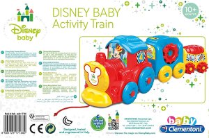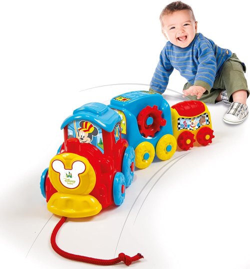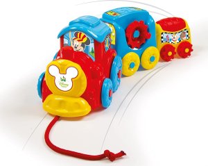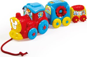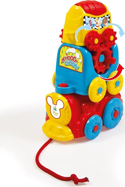 Veselý farebný vláčik s motívom obľúbených postavičiek Disney je plný prekvapení. Dieťa môže vagóniky skladať na seba alebo vláčik ťahať za sebou. Vláčik má tiež množstvo koliesok a mechanických častí, ktoré dieťa môže skúmať a objavovať.
