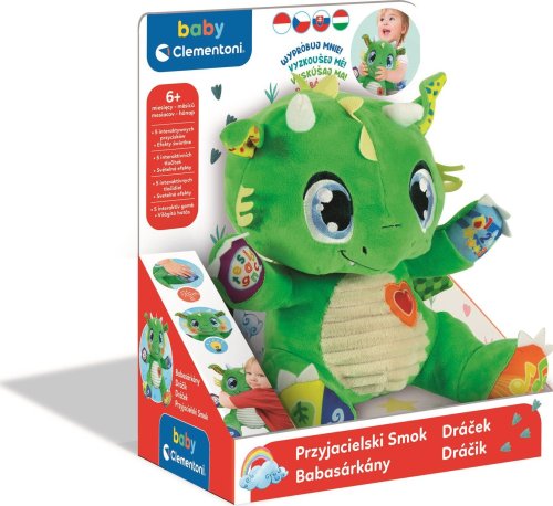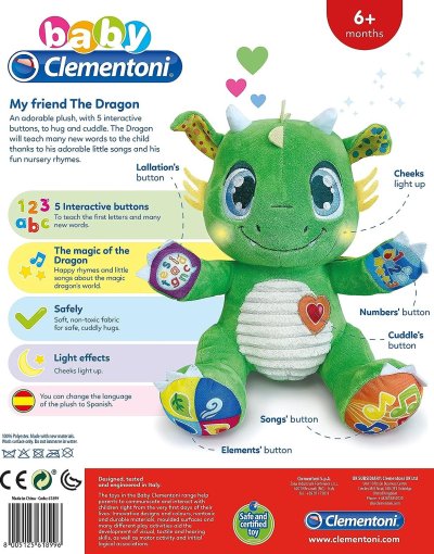 Dotykom 5 interaktívnych tlačidiel hračka hovorí a zoznamuje deti s prvými písmenami, číslami, tvarmi a farbami. Srdce je interaktívne tlačidlo, ktoré sa rozsvieti, zatiaľ čo Dráčik hovorí a spieva pesničky a riekanky. V češtine, slovenčine, poľštine a maďarčine (jazyk sa nastavuje v priestore pre batérie). Možno čistiť iba povrchovo, neponárajte do vody.