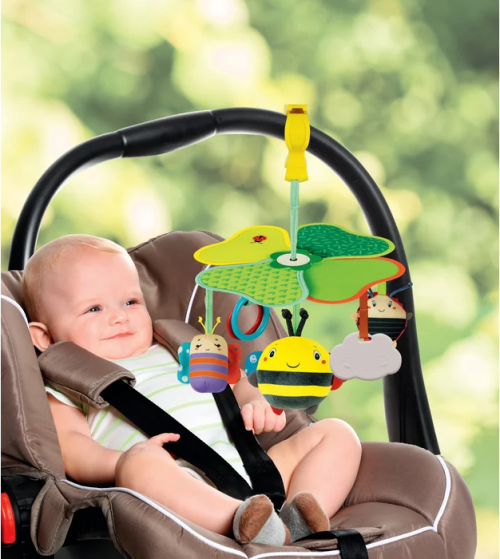 Veselý závesný kolotoč so zvieratkami je ideálny na cesty, k autosedačke, do postieľky či ku kočíku. Farebné závesné hračky vydávajú zvuky, povzbudzujú detskú zvedavosť a rozvíjajú zmysly.