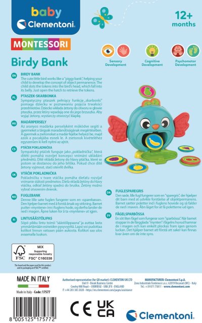 Hravá pokladnička v tvare vtáčika od renomovanej značky Clementoni je ideálny spôsob, ako deti naučiť hospodáriť s peniazmi a zároveň si užiť zábavu.