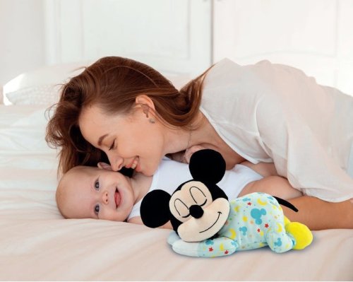 Mäkučký plyšový Mickey pomáha upokojiť a uvoľniť dieťa vďaka chromoterapii a jemným melódiám.