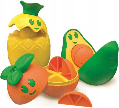 avokádo je možné otvoriť a odhaliť guľôčku, ktorú možno vybrať a znovu vložiť, časti tvoriace ananás možno skladať na seba, pomaranč sa rozdeľuje na 4 dieliky, ktoré možno znovu zložiť, rozvíja logické myslenie prostredníctvom rôznych druhov hier so vzrastajúcou obtiažnosťou, každý plod nabáda k iným manuálnym cvičeniam a umožňuje zažiť.