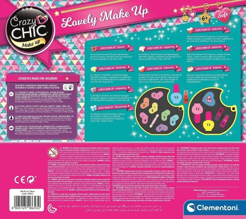 Obsahuje: 7 očných tieňov, aplikátor, laky na nechty, lesk na pery a 2 rúže. Rozmery zatvorenej paletky: priemer 13 cm. Súčasťou balenia je návod na použitie.