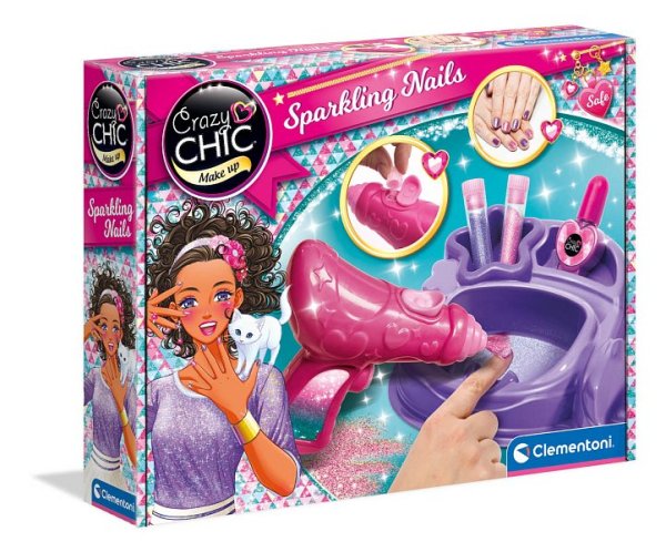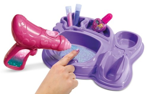Ozdôb si nechty žiarivými trblietkami a okúzli svoje okolie! Natri svoje nechty lakom a dozdôb ich s pomocou pera vystreľujúceho trblietky. Balenie obsahuje: pracovisko na zdobenie nechtov, pero vystreľujúce flitre, lak na nechty, fialové trblietky, ružové trblietky, ilustrovaný návod. Vhodné pre deti od 6 rokov. Prevádzka na dve batérie 1,5 V typu AA (nie sú súčasťou balenia).