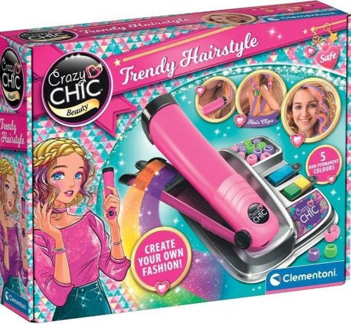 S novou sadou na farbenie vlasov Crazy Chic môžete vytvárať dúhové kadere. S touto sadou môžete byť skutočnými stylistami účesov! Doska s moderným dizajnom a profesionálnym vzhľadom je vybavená ľahko vymeniteľným krytom farebnej kazety. Výsledkom je vždy nový vzhľad, vďaka jednoduchému použitiu a veľkej rozmanitosti farieb a odtieňov. Sada obsahuje žehličku na vlasy, farebné pastelky, hubky a dokonca aj sadu korálikov na skrášlenie všetkých štylizácií! Táto sada je inšpiratívna zábava, ktorá uvoľňuje predstavivosť, posilňuje kreativitu a jedinečnosť malých dievčat.