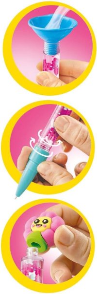 obsahuje stojan a lievik pre ľahké plnenie ohromujúci výsledok - ozdoby po naplnení plávajú vo vode všetko pre výrobu 3 štýlových pier vrátane 3 rôznofarebných náplní podporuje kreativitu a zručnosť skvelý darček pre každú príležitosť