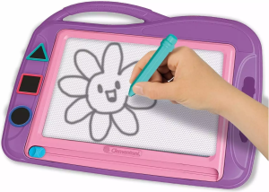 kresbu je možné zmazať jednoduchým pohybom ruky, praktické držadlo, obsahuje 3 pečiatky, stimuluje predstavivosť, podporuje manuálne zručnosti a vynaliezavosť.