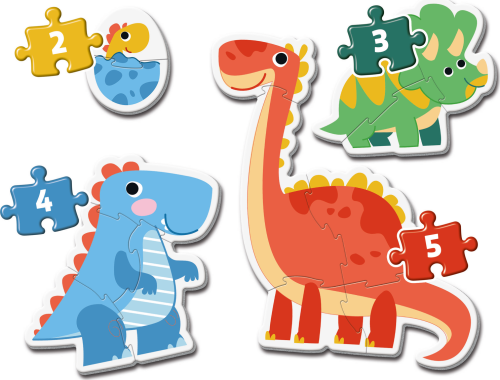 Štyri veľké puzzle pre najmenšie deti s počtom 2, 3, 4 a 5 dielikov. Veľké dieliky s hrúbkou 3mm sú pre malé detské ručičky ľahko uchopiteľné a prvé skladanie rozvíja manuálnu zručnosť, koordináciu aj priestorovú orientáciu. Pre deti od 2 rokov.