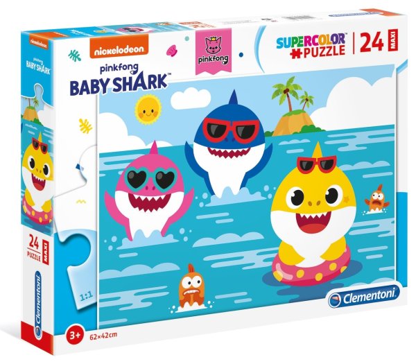 Detské puzzle s obľúbenou žraločou rodinkou. Vhodné pre deti od 3 rokov. Rozmer zloženého puzzle cca 62 x 42 cm