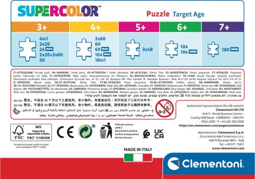 Skladanie puzzle pomáha deťom rozvíjať manuálnu zručnosť a schopnosť pozorovania. Kvalita materiálov a exkluzívna technika tlače zaručujú trvalo krásne, živé a žiarivé farby. Rozmer zloženého puzzle cca 23,5 x 33,5 cm