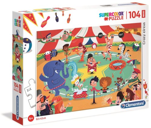 Detské MAXI puzzle s motívom cirkusového prestavenia. Puzzle SuperColor Collection - edícia navrhnutá špeciálne pre deti, pomáha im rozvíjať manuálnu zručnosť a schopnosť pozorovania. Kvalita materiálov a exkluzívna technika tlače zaručujú trvalo krásne, živé a žiarivé farby. Rozmer zloženého puzzle cca 62 x 42 cm