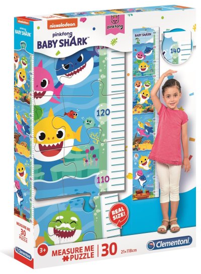 Veľký detský rastový meter s motívom populárnej žraločej rodinky s meradlom od 27 do 143 cm. V balení je pribalené lepidlo na zlepenie. Vďaka veľkým dielikom sa bude meter deťom dobre skladať a užijú si veľa zábavy! Hrúbka 3 mm. Vhodné pre deti od 3 rokov. Rozmer zloženého puzzle cca 21 x 118 cm