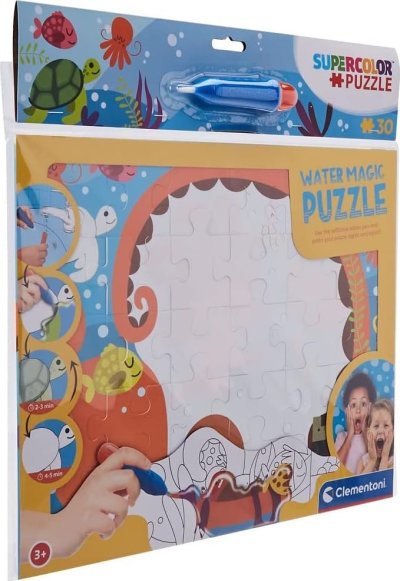 Kúzelné detské puzzle, ktoré sa maľuje vodou toľkokrát, koľkokrát chcete? To je Water Magic - kúzlo vody! Poskladajte puzzle a potom sa bavte vyfarbovaním vodným perom. Obrázok ožije mnohými farbami a potom ako mávnutím kúzelného prútika zase zmizne (po 4-5 minútach). Puzzle Water Magic od Clementoni prekvapí deti každým ťahom pera na vodu – hra, ktorá nikdy nekončí! Vymyslené, navrhnuté a vyvinuté v Taliansku. Rozmer zloženého puzzle cca 38 x 30 cm