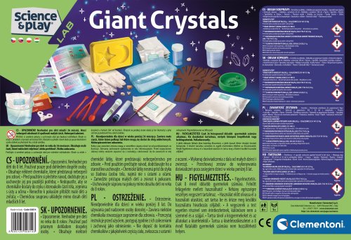 Naučte sa vytvárať priesvitné, farebné, fluorescenčné a žiariace kryštály! Bohaté laboratórium na vytvorenie množstva kryštálov žiariacich v tme! Vďaka sadre a obsiahnutým chemikáliám vytvoríte fantastické kryštály v rôznych tvaroch.