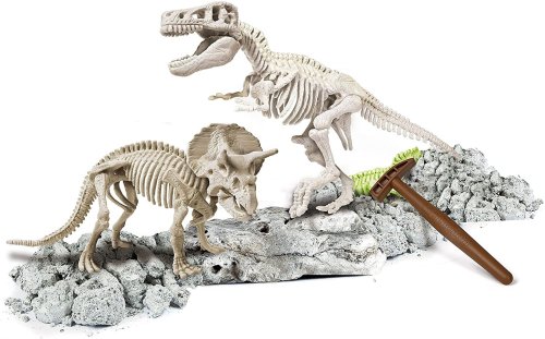 Archeologická sada dáva deťom príležitosť stať sa paleontológom a preskúmať kostry pravekých dinosaurov. Pomocou priložených nástrojov opracuj kameň a objav kosti, z ktorých si postavíš svietiacu kostru T-Rexa a Triceratopsa.
