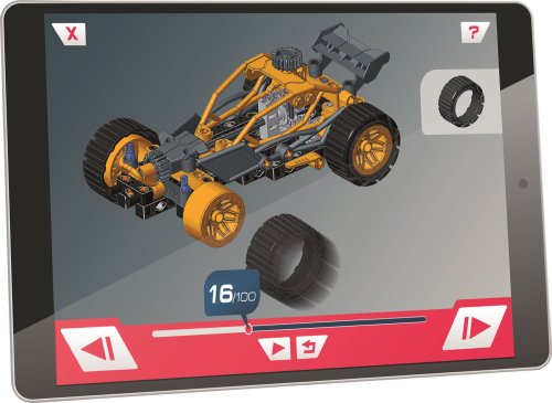 Upozornenie: Súčasťou balenia je ilustrovaný návod pre hlavný model. Návod pre druhý model je k dispozícii v elektronickej verzii v aplikácii. Okrem ilustrovaného návodu je k dispozícii aplikácia s 20 rôznymi modelmi, ktoré môže dieťa preskúmať, a navyše interaktívny 3D návod vysvetľujúci jednotlivé fázy zostavovania jednoduchým a zábavným spôsobom. Návody si môžete stiahnuť v elektronickej verzii v aplikácii (App Store, Google Play) pomocou QR kódu na obale výrobku.