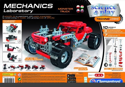 Objavuj základy mechaniky so sadou Mechanické laboratórium. Toto neuveriteľné CLEMENTONI Mechanické laboratórium-Monster truck vám pomôže priblížiť sa svetu mechaniky a strojárstva. Sada obsahuje viac ako 200 dielikov na zmontovanie vrátane diferenciálu, riadenia hrebeňa a pastorku a kardanového kĺbu. Objavte a vytvorte 10 fantastických a dynamických modelov Monster truckov! Vďaka ilustrovanému manuálu bude vaše dieťa vedené krok za krokom, takže sa môže hrať úplne bezpečne. Budovaním modelov sa deti učia základy mechaniky a inžinierstva. Súprava pomáha rozvíjať manuálnu zručnosť a kreativitu. Vhodné pre deti od 8 rokov.