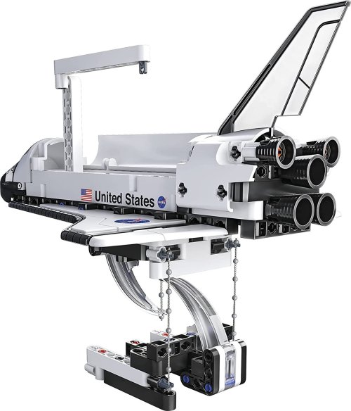 vedecká a kreatívna sada cez 220 dielikov konštrukcie modelu je založená na rovnováhe síl v statike a napätí = tensegrita nastaviteľné krídla sa zdvíhajú a klesajú otvárací nákladový priestor robotická ruka Canadarm, ktorú používajú astronauti vo vesmíre zoznamuje s princípmi mechaniky a inžinierstva pomáha rozvíjať po naskenovaní QR kódu na obale sa zobrazí video STEM - vzdelávací koncept, ktorý využíva prepojenosť štyroch vedných odborov: S cience (prírodné vedy), Technology (technika), E ngineering (technológia) a M athematics (matematika)