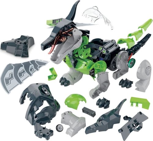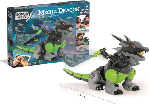 44cm dlhý interaktívny drak so senzormi pre komunikáciu s dieťaťom chodí, pohybuje chvostom, máva krídlami ovládanie: infračervenými senzormi pomocou aplikácie (možno stiahnuť na AppStore alebo GooglePlay), píšťalkou (súčasťou balenia) alebo tlieskaním rúk 96 dielikov 3 herné režimy 3 motory dva motory pre pohyb krídiel a papule, servomotor pohybuje hnacím kolesom a kĺbom uprostred tela) otáča sa a prenasleduje korisť, ako by bola živá rozvíja zručnosti detí v oblasti vedy, technologickom inžinierstve a matematiky hra vyžaduje presnosť pri montáži STEM - vzdelávací koncept, ktorý využíva prepojenosti štyroch vedných odborov: S cience (prírodné vedy), T echnology (technika), E ngineering (technológia) a M athematics (matematika)