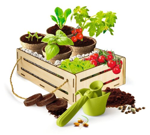 Deti si vyskúšajú ekologické pestovanie zeleniny vrátane celej prípravy a správneho zalievania. Budú sa pritom učiť trpezlivosti, pretože rastlinkám chvíľu trvá než vzklíčia a vyrastú, a pri starostlivosti o ne sa určite budú obávať, aby im nezahynuli a dobre rástli. Nájdu tak s Vašou pomocou odpovede na množstvo otázok o prírode a starostlivosti o nej, ktorým my dospeláci súhrne hovoríme ekológia a ochrana životného prostredia. Obsah súpravy: drevená debnička, biologicky rozložiteľné kvetináče, náradie z recyklovaného plastu, organické semená, plátky rašeliny, brožúrku s návodom a radami (česky, česky, poľsky, maďarsky).