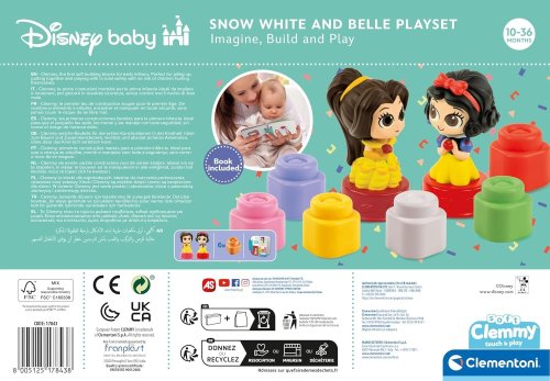 Balenie obsahuje: 6 mäkkých kociek Clemmy, 2 kocky s postavičkami princezien, ilustrovanú knižku. UPOZORNENIE: Mäkké kocky je možné používať aj pri hraní vo vode, je možné umývať neutrálnym mydlom pri nízkych teplotách, max 30 °C. Značka BABY CLEMENTONI je synonymom kreativity, nadšenia a dôrazu na kvalitu. Hračky pomáhajú rodičom pri komunikácii s dieťaťom. Vzhľad hračky a jej inovatívne farby, netoxické a pevné materiály, vytvarovaný povrch a rôzne funkcie pomáhajú pri rozvoji hmatových a sluchových schopností, napomáhajú pohybovej aktivite a vyvolávajú prvé logické asociácie. Z výrobkov firmy sú na slovenskom trhu obľúbené najmä CLEMMY kocky, ktoré sú vyrobené z mäkkej netoxickej gumy. Tá je zároveň ľahko umývateľná a má ľahkú vanilkovú vôňu.
