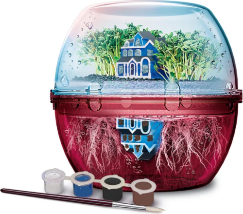 Aktivita kombinujúca botaniku a kreativitu. Pestujte rastliny pomocou hydropónie, pričom korene sa postupne vyvíjajú, až sa ponoria do červeného dna. Súprava obsahuje všetko príslušenstvo – nádobu, semená, hlinu, sadru, formy a temperové farby – na vytvorenie strašidelnej scény.