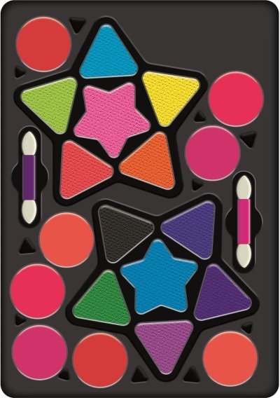 farebné očné tiene, trblietavé očné tiene, rúže, zrkadlo, penový aplikátor (2x).
