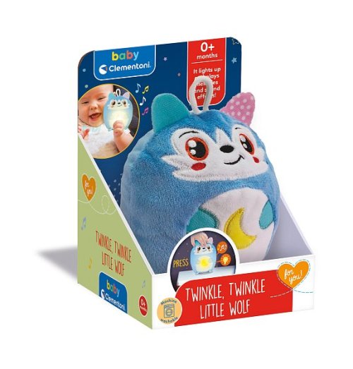 Interaktívny malý vlk Twinkle, Twinkle je upokojujúce nočné svetielko a plyšová hračka, ktorá pomáha deťom relaxovať a postupne zaspať. Obsahuje upokojujúce melódie a biely šum, špeciálne vybrané tak, aby dieťaťu pomohli s prechodom k spánku. Teplé svetlo vyžarované hračkou vytvára príjemné a upokojujúce prostredie, takže je ideálny pre novorodenca aj bábätká od 6 mesiacov, ktoré sa učia spať samostatne. Po vybratí elektronického modulu je možné prať v práčke. Objavte všetky postavičky radu Twinkle Twinkle od Baby Clementoni: Ovečku, Vlka, Líšku alebo Jazveca. Batérie: 4 x LR44, sú súčasťou. Rozmery balenia: 16 x 12 x 12 cm. Vek: 0 m+