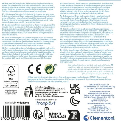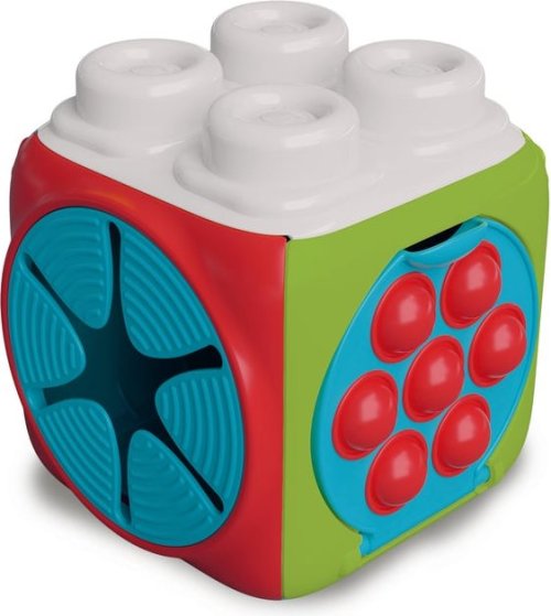 Šesťhranná kocka plná reliéfnych textúr na preskúmanie. Mnoho aktivít na stimuláciu manuálnych zručností dieťaťa. Každá strana má inú textúru alebo funkciu, ktorá podporuje prieskum, zmyslový rozvoj a manuálnu zručnosť. Dieťa môže pripevniť kocky na hornú stranu, vložiť ich do otvoru a získať ich z dverí pomocou "pop & flip" guličiek. Obsahuje 4 mäkké kocky, ktoré sú ideálne na podporu multizmyslového rozvoja dieťaťa. Rozmer balenia: 15x19x15 cm. Vek 6m+