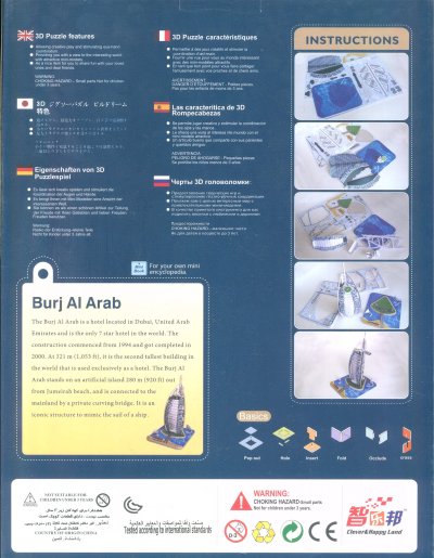 3D puzzle Burj Al Arab alebo Veža Arabov je model ikonického hotela v Dubaji, ktorý je často tiež nazývaný ako plachetnica.