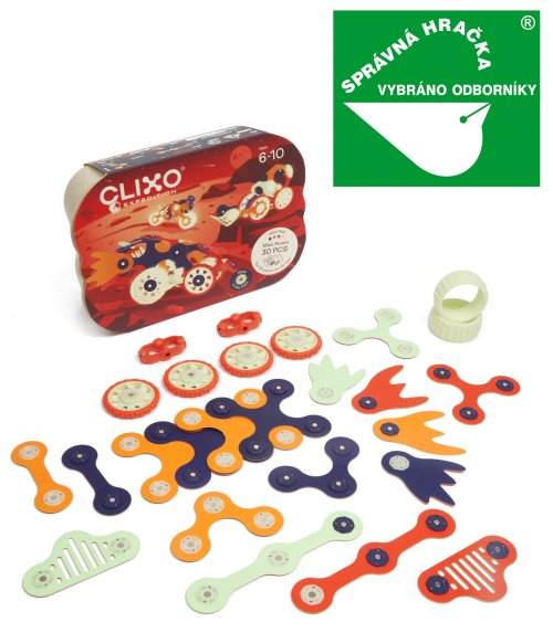 CLIXO Mars Rovers - 30 kusov je flexibilná, veľmi ľahká, v tme svietiaca magnetická stavebnica zo syntetického papiera v 4 farebných kombináciách, ktorá je inšpirovaná origami a zároveň je to skvelá Montessori hračka. Táto stavebnica je založená na princípe spájania rôznych tvarov a dielikov pomocou magnetov k sebe. Tematická vesmírna sada Mars Rovers, umožňuje zostavovať vďaka priloženým 2 druhom svietiacich kolies vozítka, motocykle a vesmírne drony na preskúmavanie marťanskej krajiny. Inšpirácie pre rôzne stavby nájdete na papierovom balení, ktoré tvorí obal výrobku. V tomto zázračnom balení sa skrýva svet zábavných objavov! Charakteristika sady: • Počet tvarov: 12• Počet kusov: 30 (v 4 farbách az toho 1 fosforeskujúca)• Rozmer balenia: 16,5 x 16,5 x 6,5 cm• Váha balenie: 150 gramov• Rozmery prvkov: cca 10 x 10 cm• Odporúčaný vek: 6-99Hlavné vlastnosti stavebnice CLIXO:• Vysoko kvalitné, ekologické dieliky pre dlhé hodiny hrania• Vysoká flexibilita prvkov• Vodeodolné diely vďaka použitiu kvalitného syntetického papiera, ktoré umožňujú aj vo vode• Veľmi silné magnety (prvky priťahujúce sa z veľkej vzdialenosti aj niekoľkých cm)• Ľahké a kompaktné, ideálne pre tvorenie doma aj na cestách• Nespočet výtvorov z hŕstky dielikov, jednoducho poskladajte a zbaľte• Bezplatný prístup na YouTube k ďalším stavbám, tipom a trikom• Brožúra s kreatívnymi návrhmi pre vytváranie rôznych konštrukcií v každej sade• Prispôsobiteľný hrací systém podporuje kreatívne myslenie a sebavyjadrenie• Umožňuje zábavu, sústredenie a úľavu od stresu