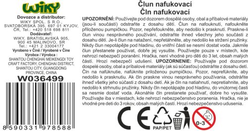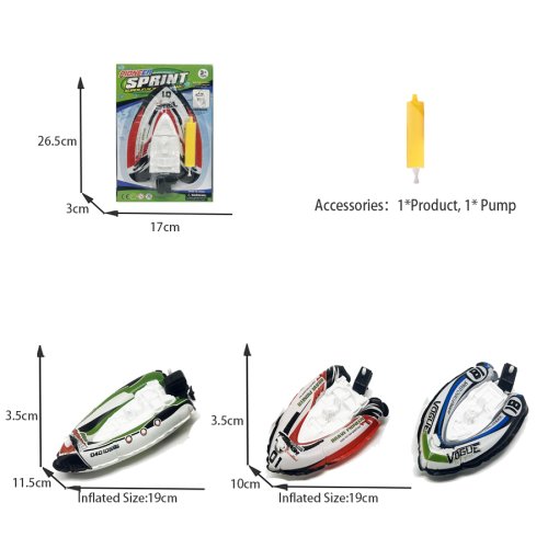 Čln nafukovací. Rozmery 19x11,5x3,5 cm a 19x10x3,5 cm. 3 varianty - zelená, červená, modrá.