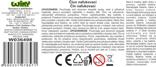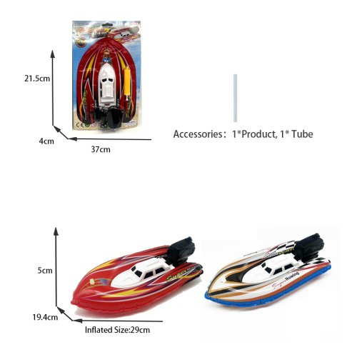 Čln nafukovací. Rozmery 21,5x3x37 cm. Súčasťou pumpa. 2 varianty - červená, modrá. 2xAA batérie nie sú súčasťou.